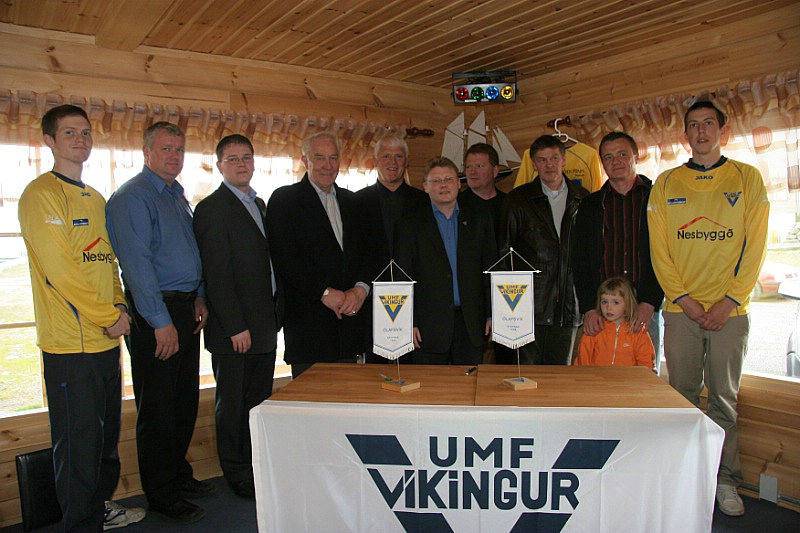 Meistaraflokkur Víkings í Ólafsvík leikur nú í búningum merktum Nesbyggð ehf. Búningurinn var formlega tekinn í notkun fyrir fyrsta heimaleik þeirra í síðustu viku og var liðið þá kynnt fyrir styrktar- aðilum. Fyrir leikinn skrifuðu styrktaraðilar undir samnig við knattspyrnudeildina. Á myndinni eru styrktaraðilar ásamt Jónasi Gesti Jónassyni formanni knattspyrnudeildar Víkings.