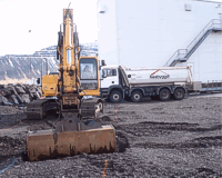 Unnið við jarðvegsframkvæmdir í Ökugerði við Reykjanesbraut.