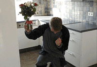 Nýir íbúðaeigendur láta oft þakklæti sitt í ljós þegar þeir taka við íbúð sinni og sýna það með ýmsu hætti. En það er ekki oft sem einhver er með myndavél á staðnum þegar slíkt gerist, en í þetta sinn var myndavélin nálægt og náði að festa augnablikið á myndir. Þessi ágæti kaupandi var sérlega kátur með íbúðina sína og ekki síst með málningarvinnuna. Hann sýndi þakklæti sitt þegar hann hitti málarann!