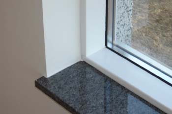 Sólbekkir að innan eru úr graníti og úti eru vatnsbretti úr steini.