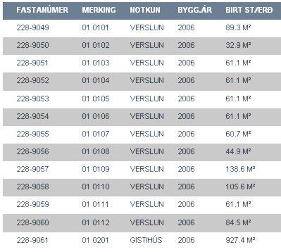 Listi yfir fasteignahluta ásamt verði og sölustöðu